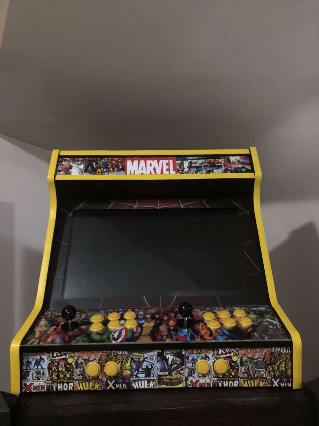 Nicolas ha compartido con nosotros el resultado final de su projecto Bartop Next Stage de 24″ con vinilo personlizado de Marvel, botones de tipo japonés en amarillo y u-molding en color amarillo.